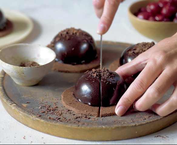 Czekoladowe półkule z wiśniami