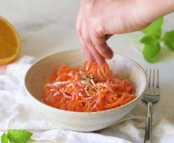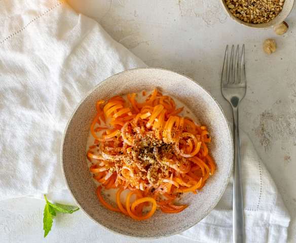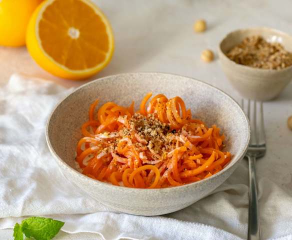 Makaron z marchewki w sosie jogurtowo-pomarańczowym