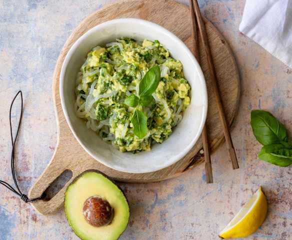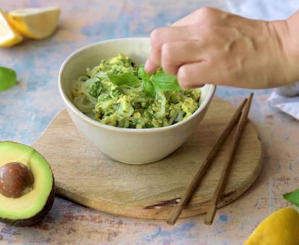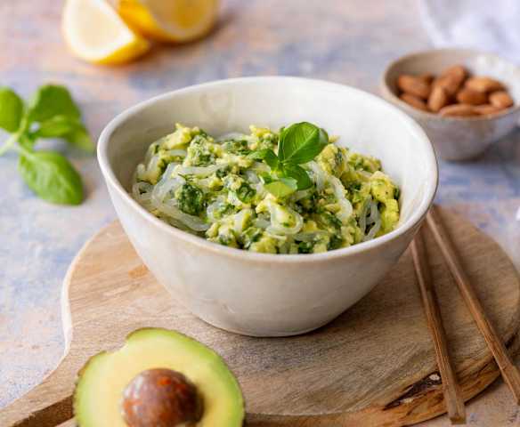 Makaron shirataki (konjac) w sosie z pesto z awokado