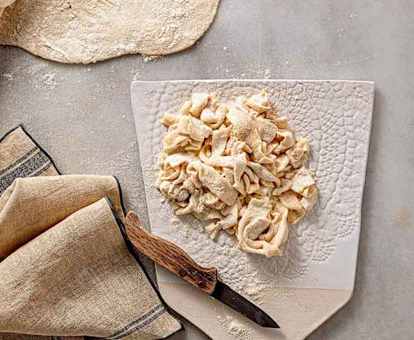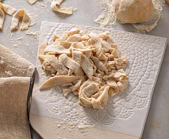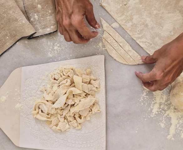 Ζυμαρικά με πανσέτα, κρέμα, καρύδια και σχοινόπρασο