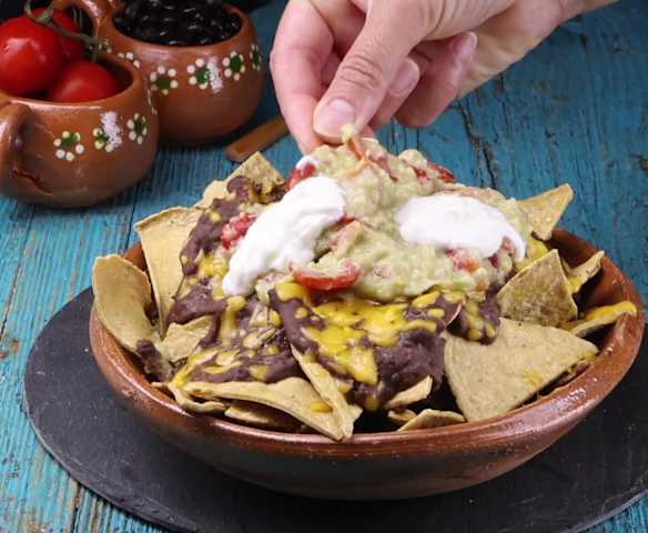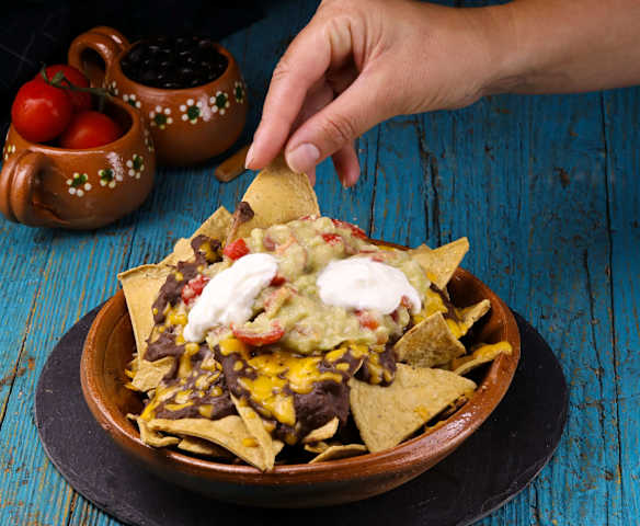 Nachos con frijoles y guacamole