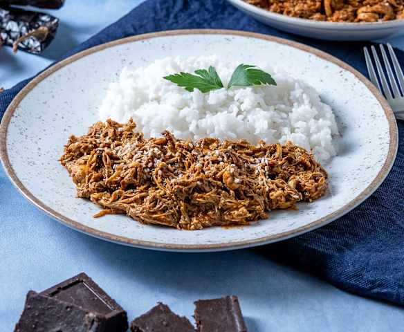 Pollo especiado a la naranja con arroz basmati y pasitas