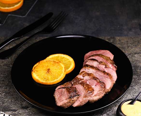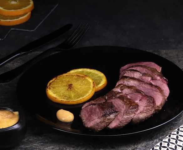 Magret de pato a la naranja con sabayón de naranja Al vacío