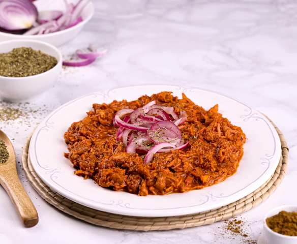 Pollo especiado a la naranja con arroz basmati y pasitas
