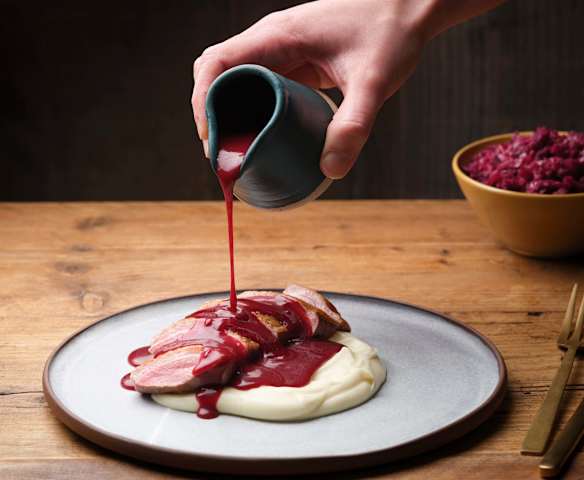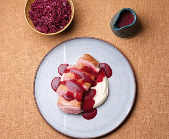 Magret de pato, col morada y apionabo