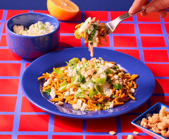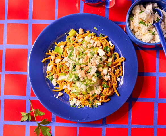 Süßkartoffel-Spätzle mit Porree-Sauce und Schafskäse