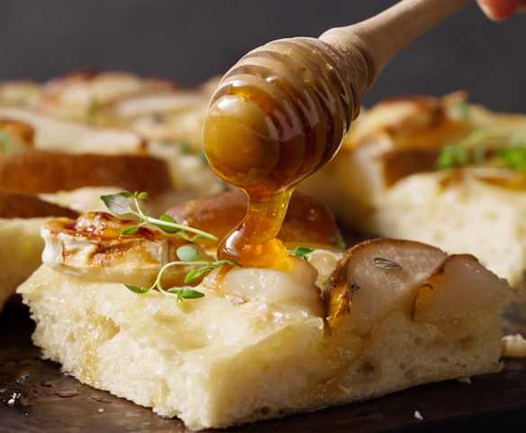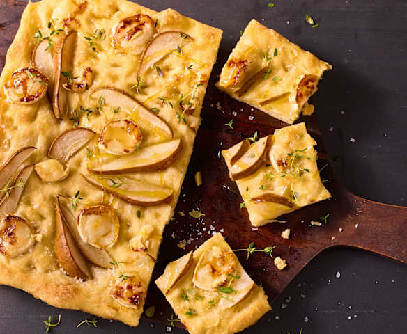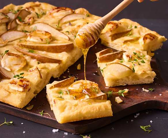 Birnen-Focaccia mit Ziegenkäse und Honig