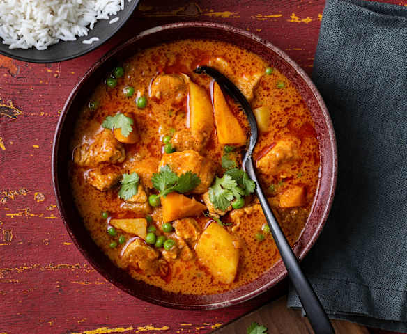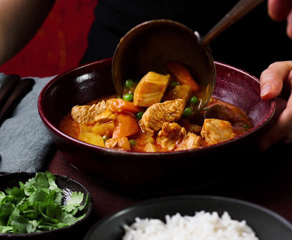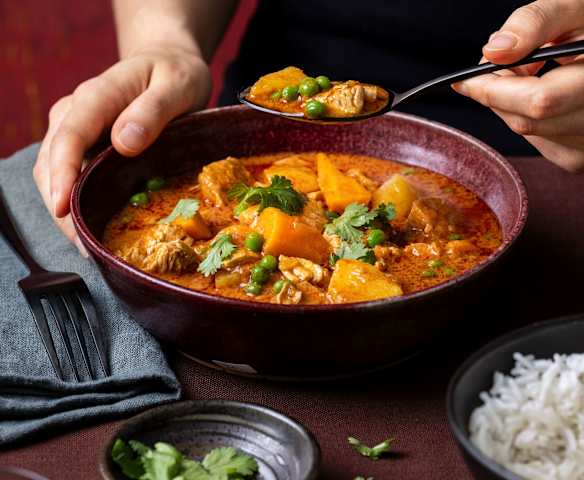 Würziger Melanzani-Kichererbseneintopf mit Huhn