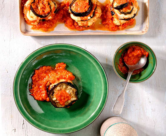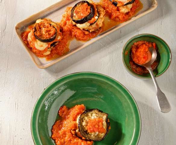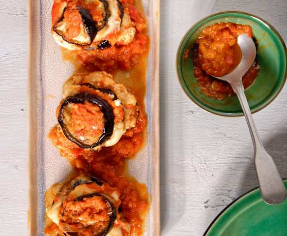 Μελιτζάνες στον ατμό με σάλτσα ντομάτας